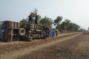 अकोट ते दर्यापूर रोडवर अपघात: ट्रक स्लिप होऊन पलटी, नागरिकांमध्ये भीती
